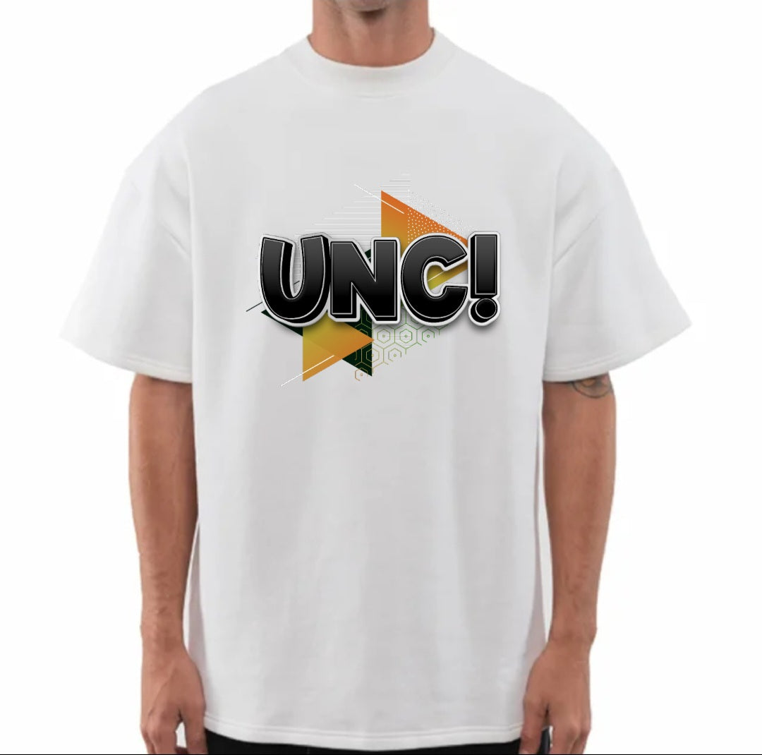 UNC! oversized tee - family meets street style. This relaxed-fit graphic tee celebrates uncles with premium comfort. Part of Boniwear's Trending Now collection.