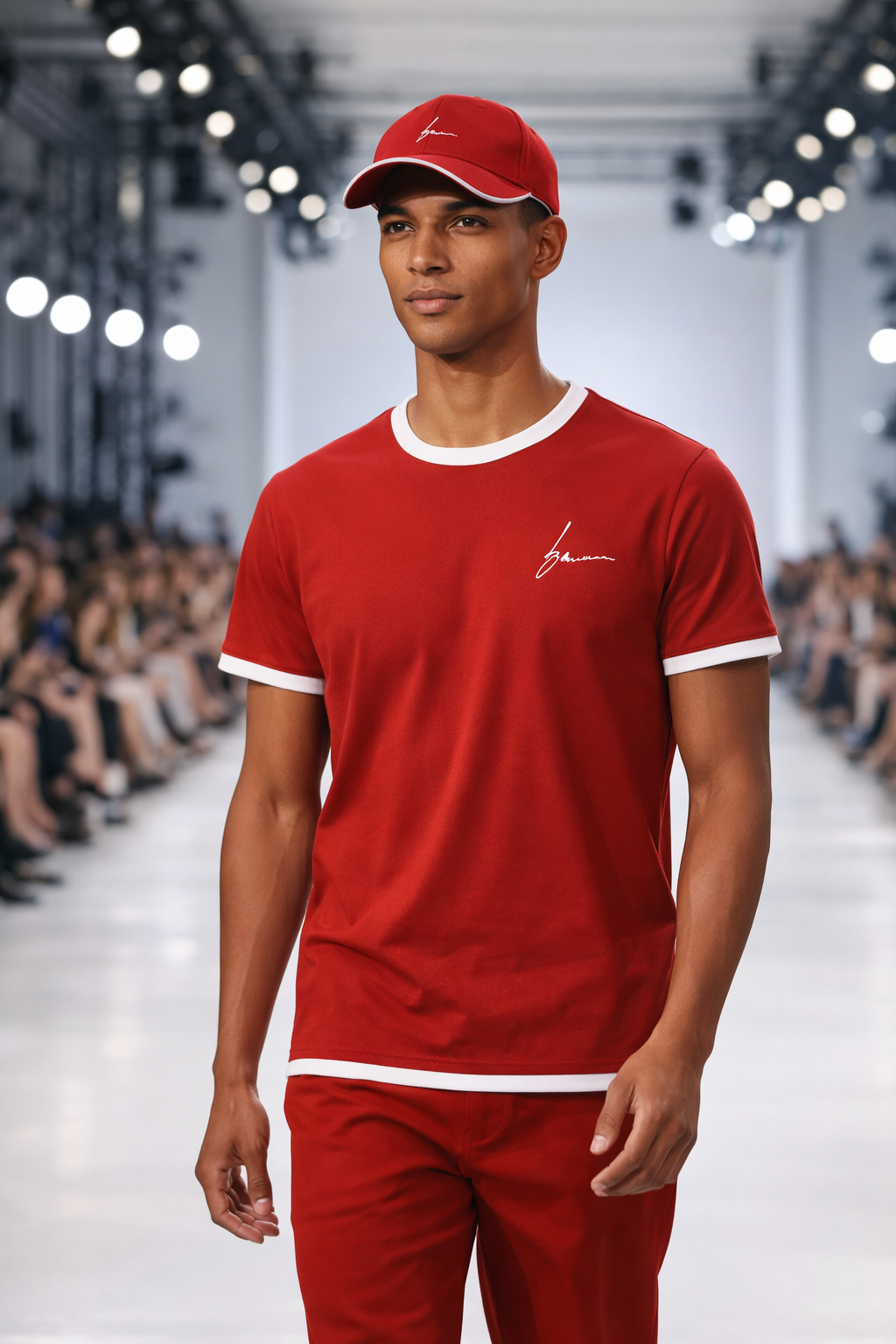 Premium Classic Blocked Ringer tee and piping trim baseball cap ensemble featuring the Script/Classic Boniwear logo. This matching set embodies the Every^Wear lifestyle - timeless pieces rooted in hip-hop culture with a minimal luxury aesthetic.