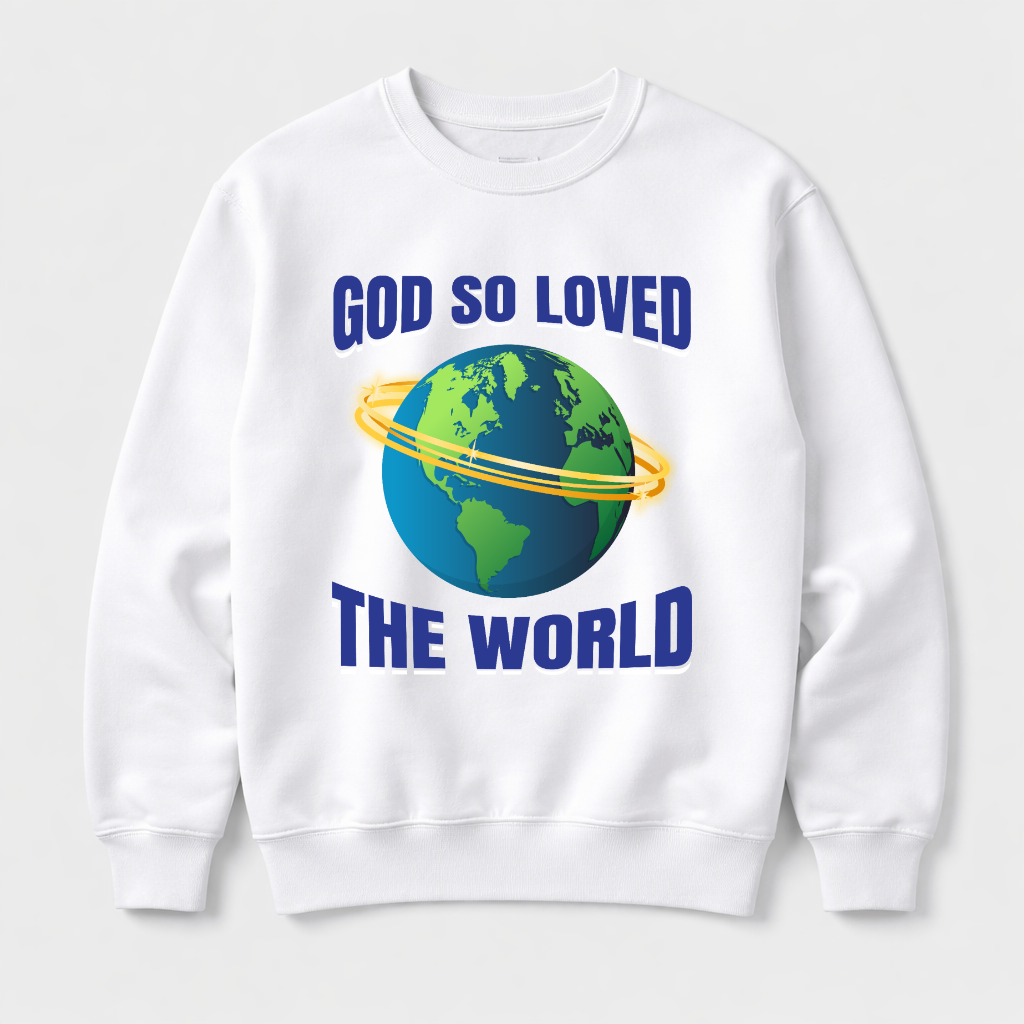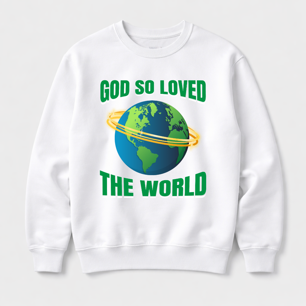 God So Loved The World crewneck sweatshirt - premium faith streetwear. This heavyweight fleece celebrates the greatest love story with ultimate comfort. Part of Boniwear Trending Now collection.