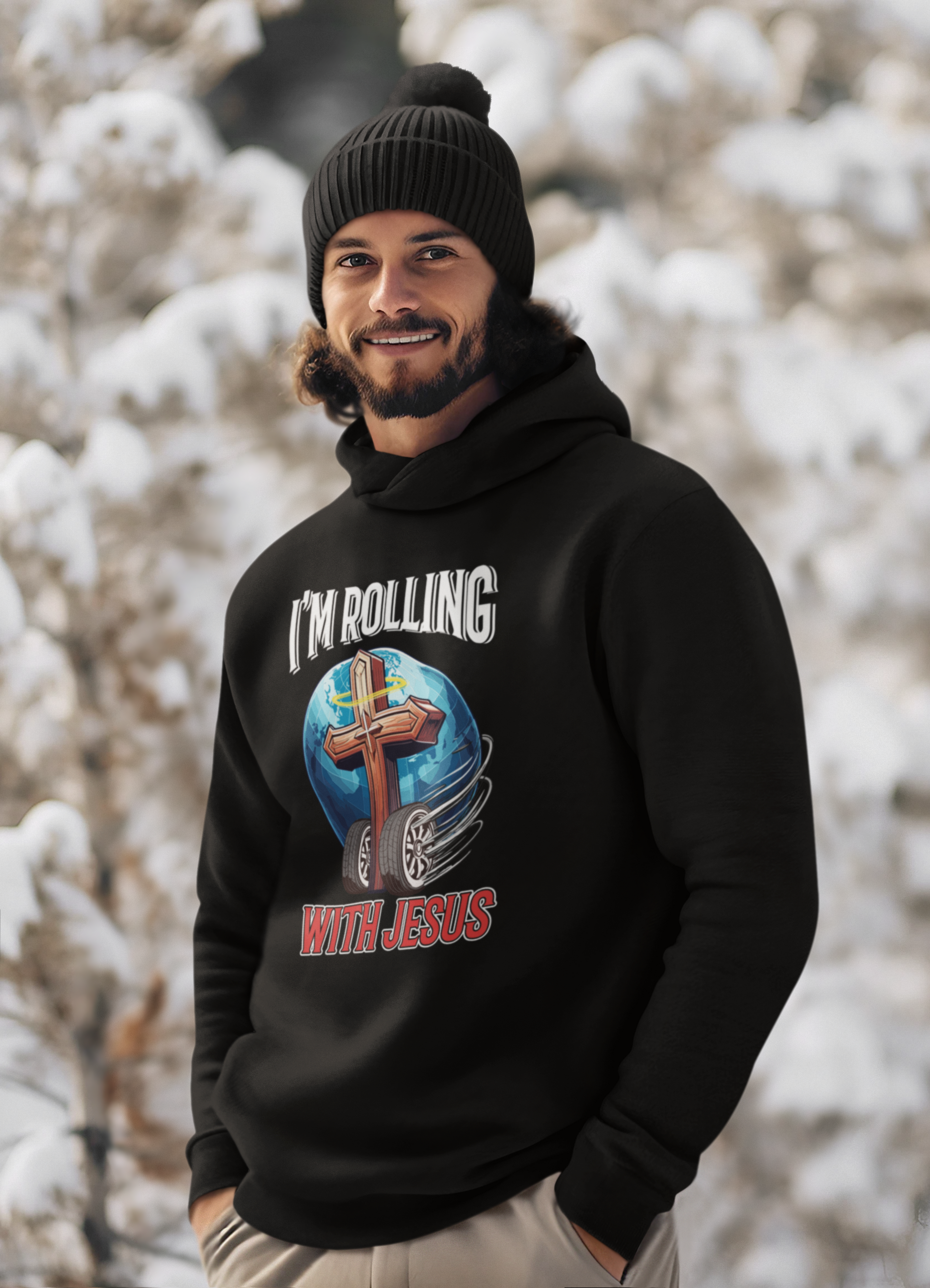 Rolling with Jesus hoodie from Boniwear. Faith-inspired streetwear. Heavyweight fleece, bold print, kangaroo pocket, drawstring hood. Trending Now collection. Free shipping over $75. Shop now.