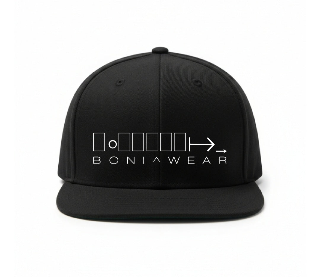 Bold Boniwear snapback cap featuring our signature bold design. Premium cotton construction with flat brim and adjustable snapback closure. One size fits most.
